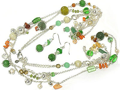 WHOLESALE SEMI PRECIOUS STONE AND FRESH WATER PEARL BEAD THREE LINE NECKLACE SET 178861