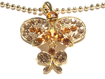 WHOLESALE MADE IN KOREA WHITEGOLD PLATING RAINBOW COLOR BUTTERFLY CHARM NECKLACE -MADE IN KOREA 17942