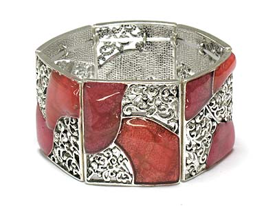WHOLESALE FORMICA AND METAL DECO WIDE STRETCH BRACELET 180074