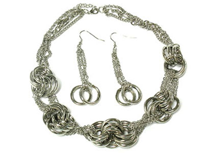 WHOLESALE MULTI CHAIN AND ROUND LINK NECKLACE AND EARRING SET 186872