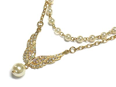 WHOLESALE CRYSTAL WING WITH SIM PEARL AND CHAIN NECKLACE 186917