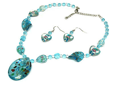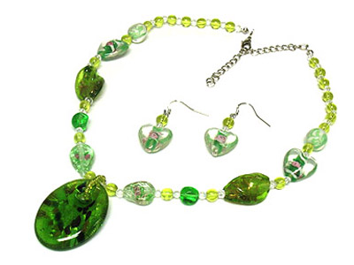 WHOLESALE GLASS DECO NUGGET AND ACRYLIC BEAD NECKLACE SET 194007