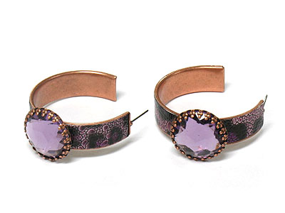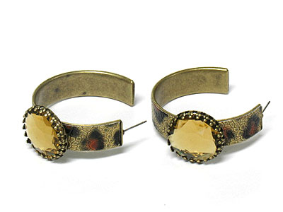 Epoxy stone and animal print metal hoop earring - hoops