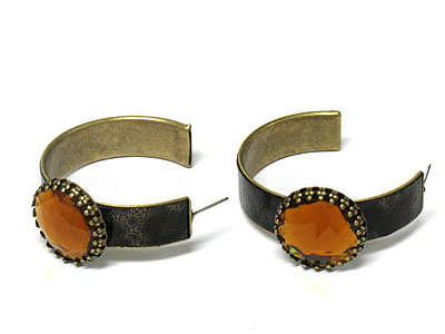 WHOLESALE EPOXY STONE AND ANIMAL PRINT METAL HOOP EARRING - HOOPS 194038