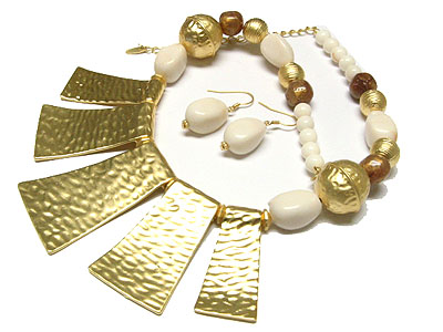 Ethnic style metal and stone necklace and earring set