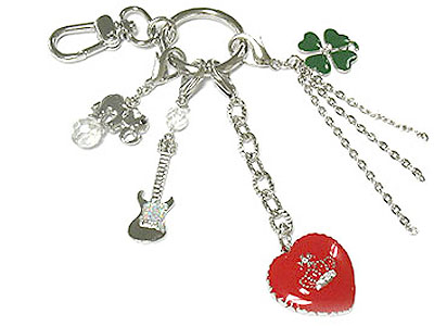 Attachable heart clover guitar and elephant charm key chain