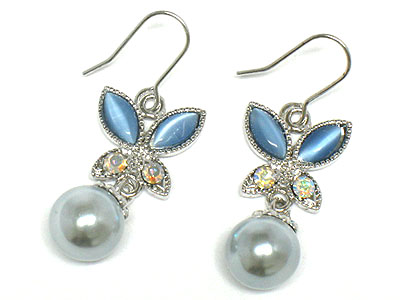 WHOLESALE MADE IN KOREA WHITEGOLD PLATING CRYSTAL BUTTERFLY AND PEARL DROP EARRING 213252