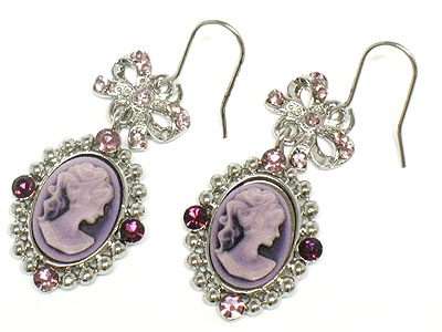 WHOLESALE MADE IN KOREA WHITEGOLD PLATING CRYSTAL AND CAMEO EARRING 213262