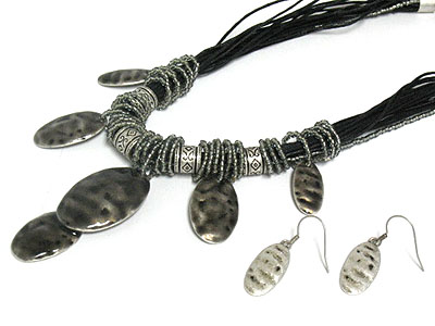 WHOLESALE HAMMERED OVAL SHAPE METAL NECKLACE AND EARRING SET 216866