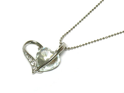 Crystal and glass and metal heart necklace