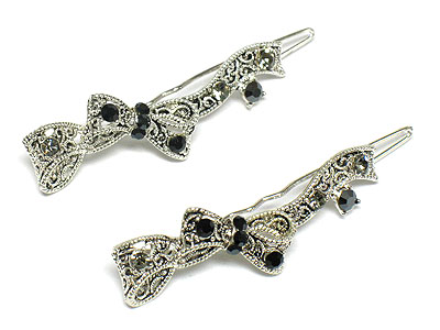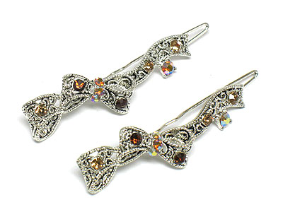 WHOLESALE CRYSTAL AND RIBBON CASTING DOUBLE HAIR PIN 233146