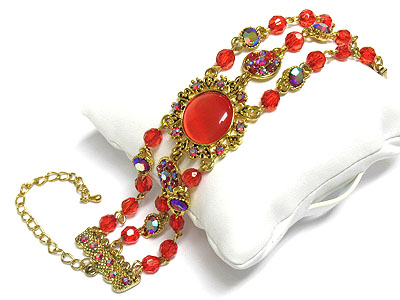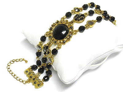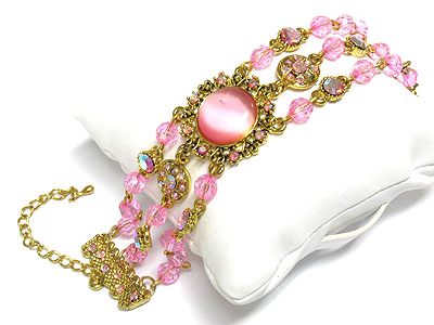 WHOLESALE VICTORIAN STYLE CRYSTAL AND GLASS BEADS THREE LINE BRACELET 235813