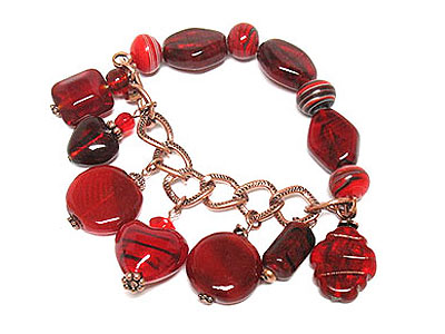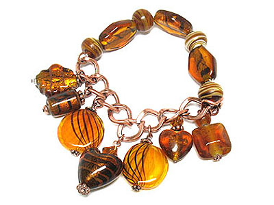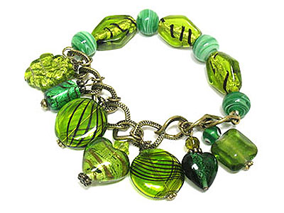 WHOLESALE DANGLING STYLE MURONO GLASS BEADS CHAIN AND STRETCH BRACELET 240501