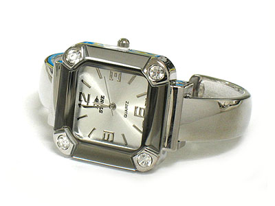 WHOLESALE CRYSTAL ON FOUR EDGE AND GLASS CUT BANGLE WATCH 240562
