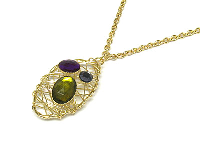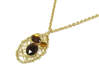 WHOLESALE EPOXY STONE DECO ON CROSSED WIRE OVAL SHAPE NECKLACE 245549