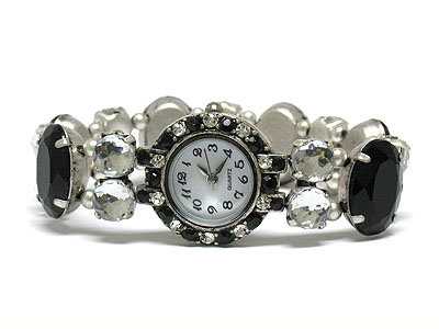 WHOLESALE CRYSTAL ROUND FACE BIG EPOXY STONE STRETCH BBRACELET WATCH 248308