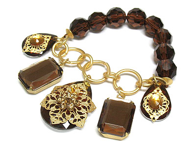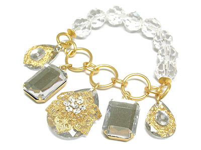 Crystal and acrylic charm filigree metal stretch bracelet