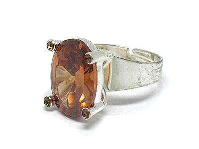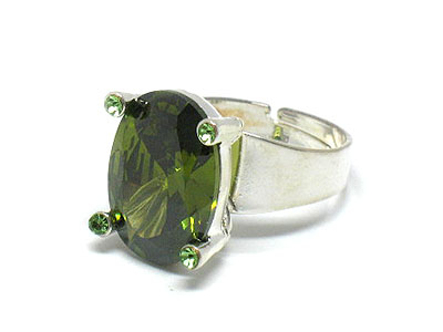 Oval cubic zirconia and crystal adjustalbe ring