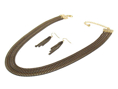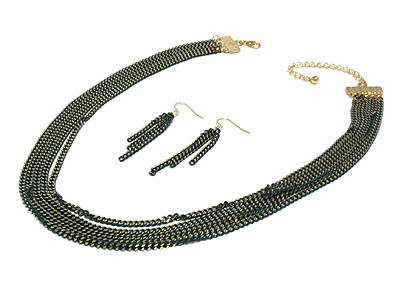 WHOLESALE FIVE COLORED METAL CHAIN NECKLACE SET 253754