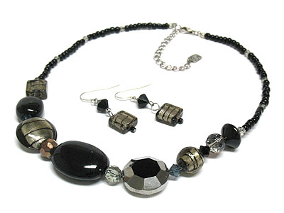 WHOLESALE MURANO STYLE GLASS BEADS NECKLACE AND EARRING SET 255442