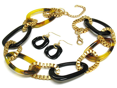 WHOLESALE METAL AND RESIN HOOP LINK NECKLACE AND EARRING SET - HOOPS 255478