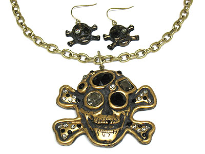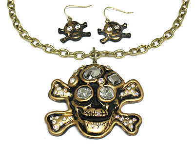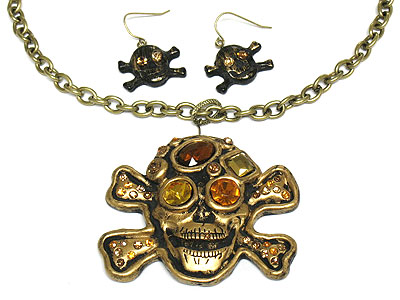 WHOLESALE CRYSTAL DECO SKULL NECKLACE AND EARRING SET 255482