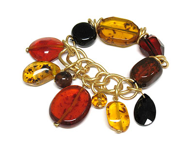 WHOLESALE MULTI NATURAL AND METAL BEADS DANGLE STRETCH BRACELET - CORAL AND TURQUOISE 255610
