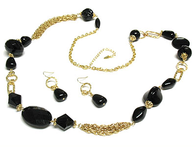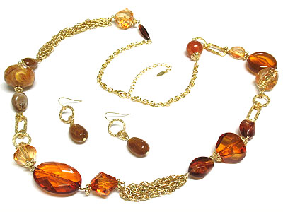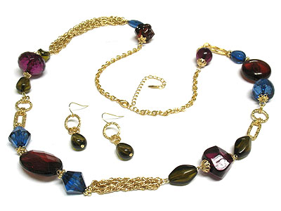WHOLESALE MULTI CHAIN AND ACRYLIC BEAD LINK NECKLACE SET 255645