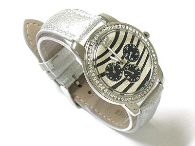 WHOLESALE CRYSTAL AND ANIMAL PATTERN STRIPE FACE AND LEATHER BAND WATCH 255658