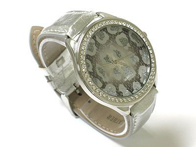 WHOLESALE CRYSTAL AND ANIMAL PATTERN SPOT FACE AND LEATHER BAND WATCH 255661