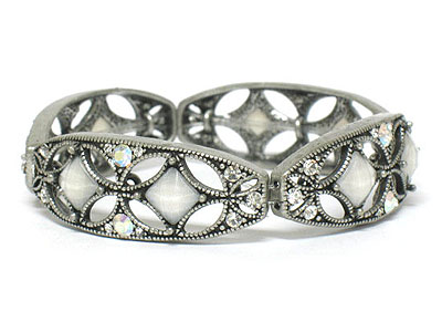 WHOLESALE CRYSTAL AND ACRYL DECO CASTING METAL STRETCH BRACELET 255843