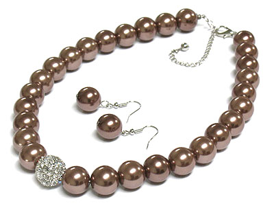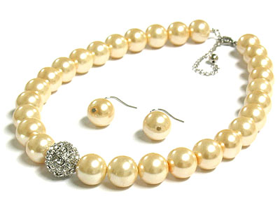WHOLESALE SIM PEARL AND MULTI CRYSTAL BALL NECKLACE SET 255913