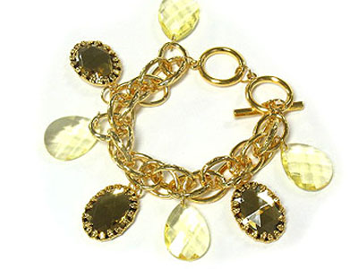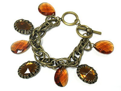 Facet glass tear drop and casting charm chain bracelet