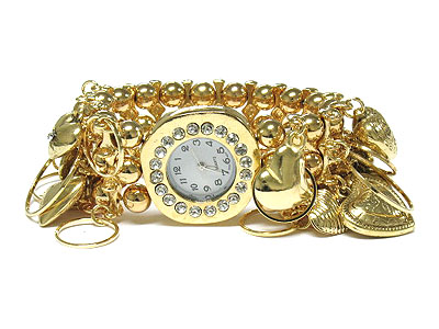 Crystal and multi theme charm double stretch watch