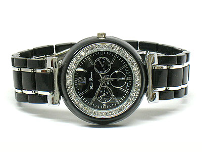 WHOLESALE DESIGNER STYLE CRYSTAL EDGED ACRYLIC FACE AND BAND WATCH 260084