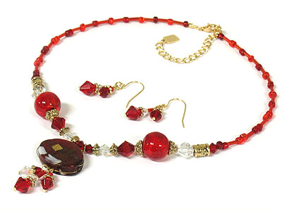 WHOLESALE GLASS BEADS NECKLACE AND EARRING SET 263144