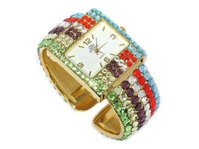 WHOLESALE TOP QUALITY HAND MADE FLAT BACK CRYSTAL CUFF WATCH 263169