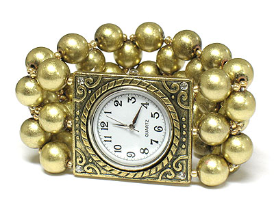 WHOLESALE ANTIQUE LOOK METAL BALL STRETCH BRACELET WATCH 263268