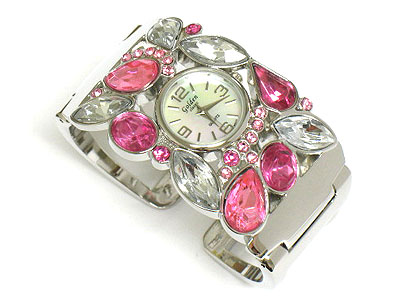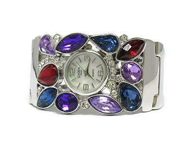 WHOLESALE MULTI CRYSTAL AND EPOXY STONE DECO CUFF WATCH 263269