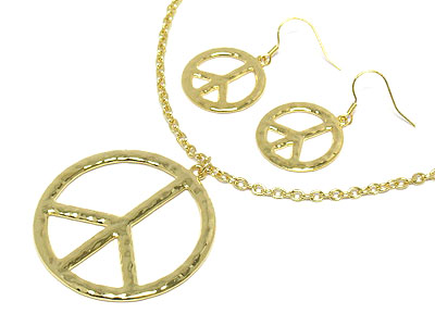 WHOLESALE METAL PEACE SYMBOL NECKLACE AND EARRING SET 263299