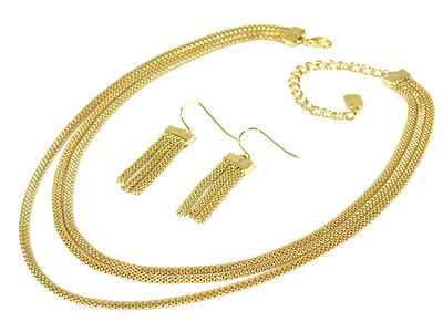 WHOLESALE THREE LINE METAL MESH CHAIN NECKLACE SET 268807