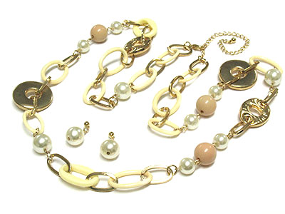 WHOLESALE PASTEL TONE SPRING COLOR ACRYL AND METAL CHAIN LINK LONG NECKLACE AND EARRING SET 271582