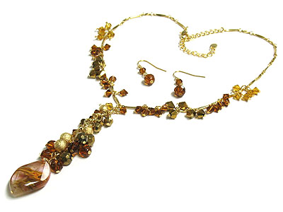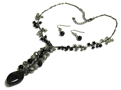 Semi precious stone and multi genuine glass beads y drop neckalce and earring set