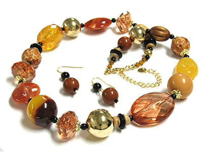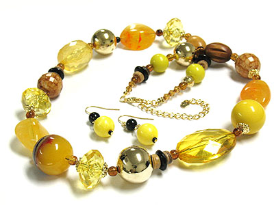 WHOLESALE NATURAL AND SYNTHTIC FACET BALL MIXED NECKLACE AND EARRING SET 271921