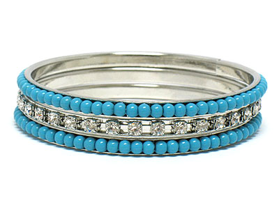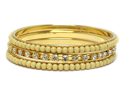 One crystal deco metal bangle and two acrylic ball deco metal bangle bracelet set