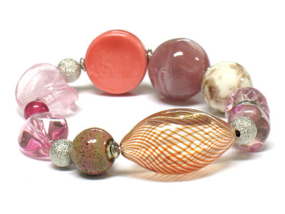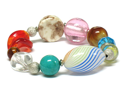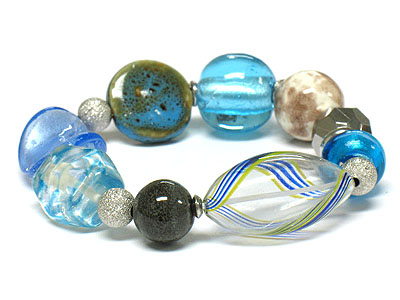 WHOLESALE MURANO GLASS AND MULTI GLASS AND FIGULINE BEAD STRETCH BRACELET 271999