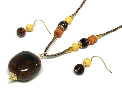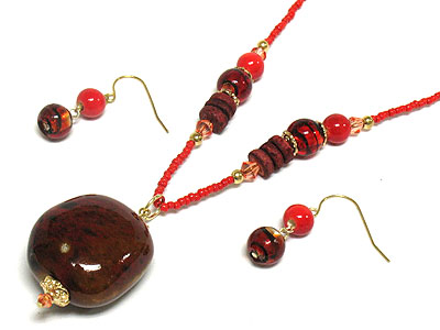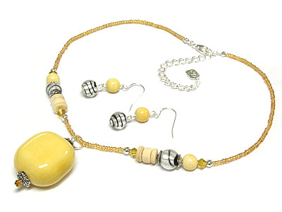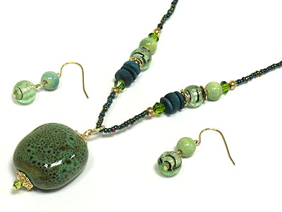 WHOLESALE PASTEL TONE FIGURIN AND GLASS NECKLACE AND EARRING SET 272068