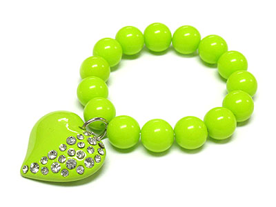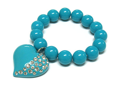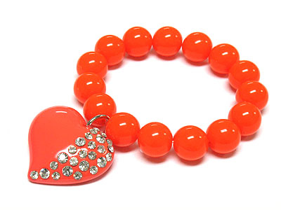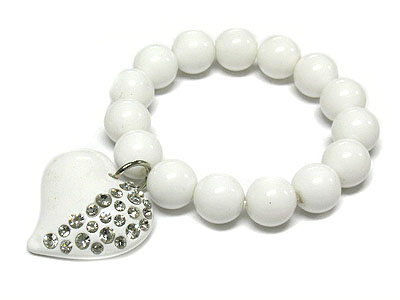 WHOLESALE CRYSTAL AND ACRYLIC HEART CHARM STRETCH BALL BRACELET 272123