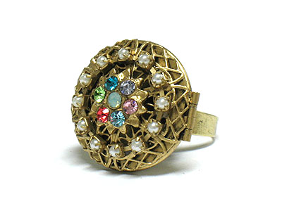 WHOLESALE CRYSTAL DECO LOCKET FASHION RING - ADJUSTABLE 272194