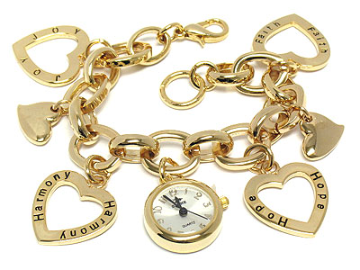 Joy harmony hope faith - four heart charm chain watch -valentine